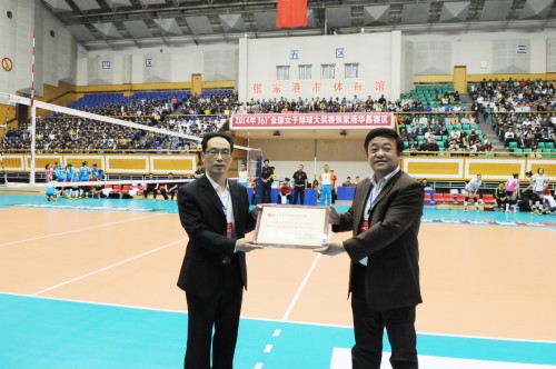賽前舉行了簡短的開幕儀式,江蘇省體育局黨組成員、紀(jì)檢組長高林,江蘇省體育局訓(xùn)練中心主任陳柏、張家港市政府辦公室副主任陳雪明、張家港市體育局局長孟波、江蘇華昌(集團(tuán))有限公司黨委委員、紀(jì)委書記陳饒忠等出席。張家港市體育局局長孟波代表賽區(qū)組委會向冠名單位——江蘇華昌(集團(tuán))有限公司贈送了感謝牌匾。